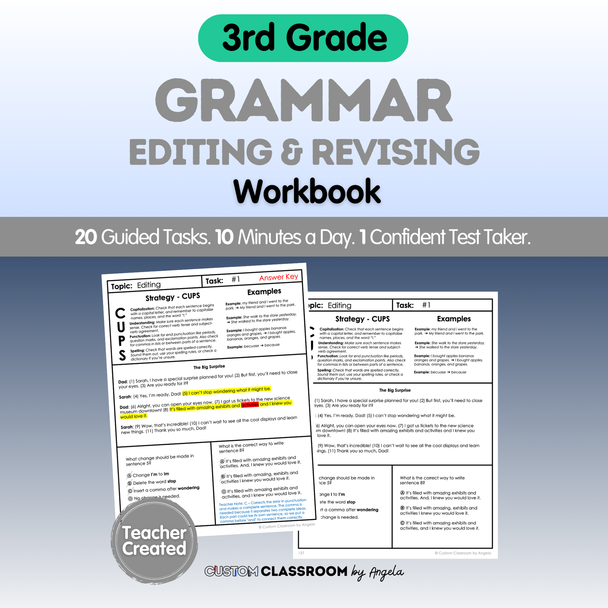 With 20 step-by-step tasks, your child will learn how to spot errors, fix grammar mistakes, and make writing stronger—all in just 10 minutes a day. No prep or teaching experience required.