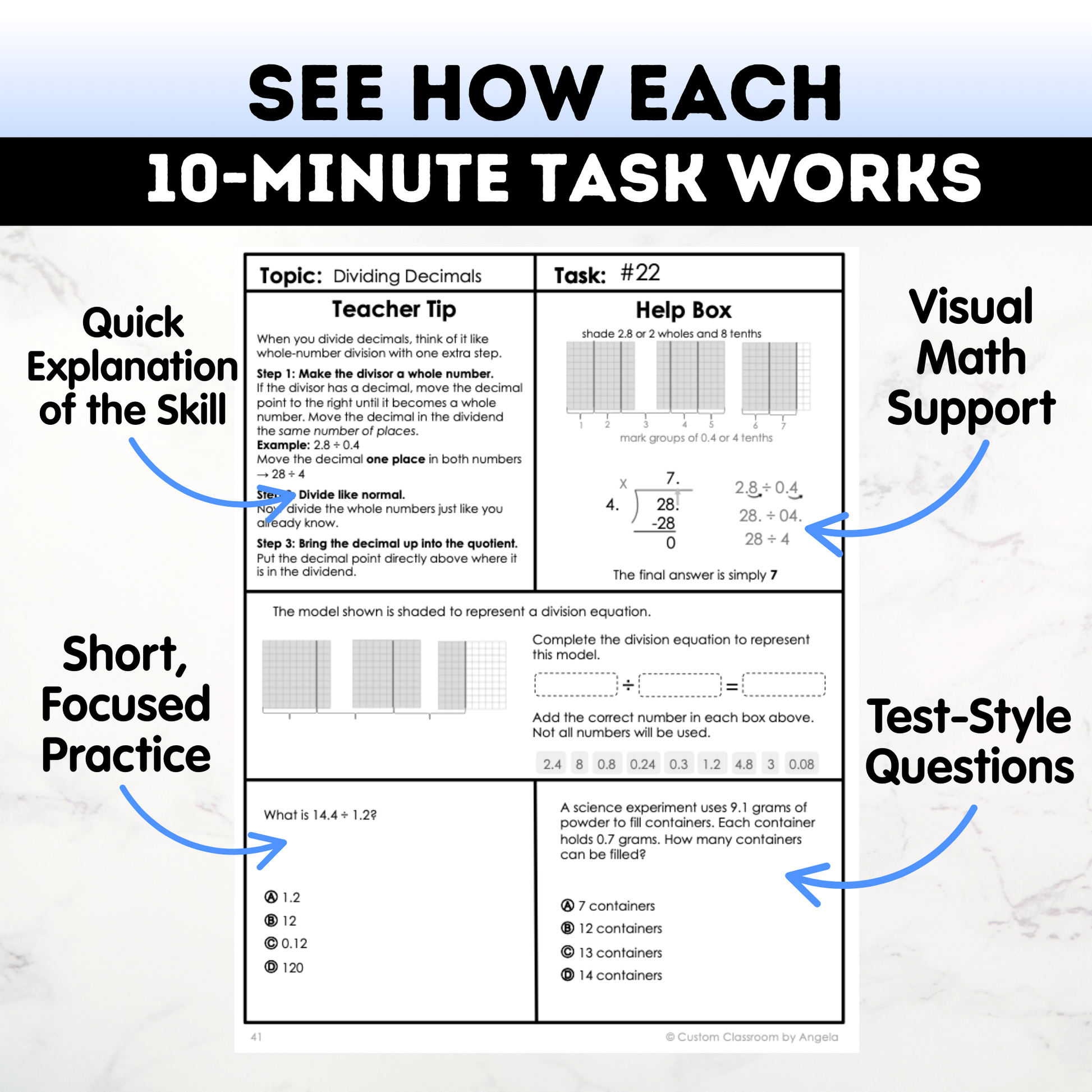 Each task is designed to build real math understanding in short, focused 10–15 minute chunks, using clear routines and strategies students can rely on.