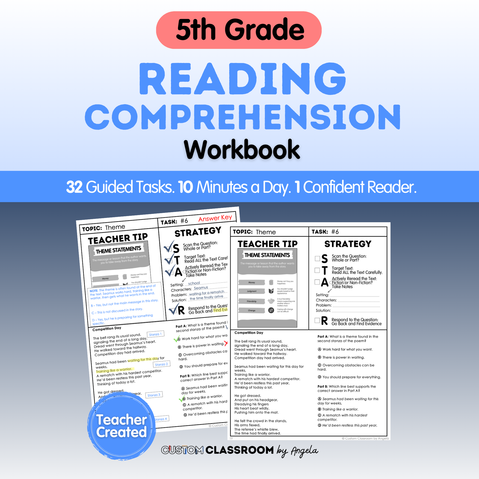 5th Grade Reading Comprehension Workbook - Digital PDF