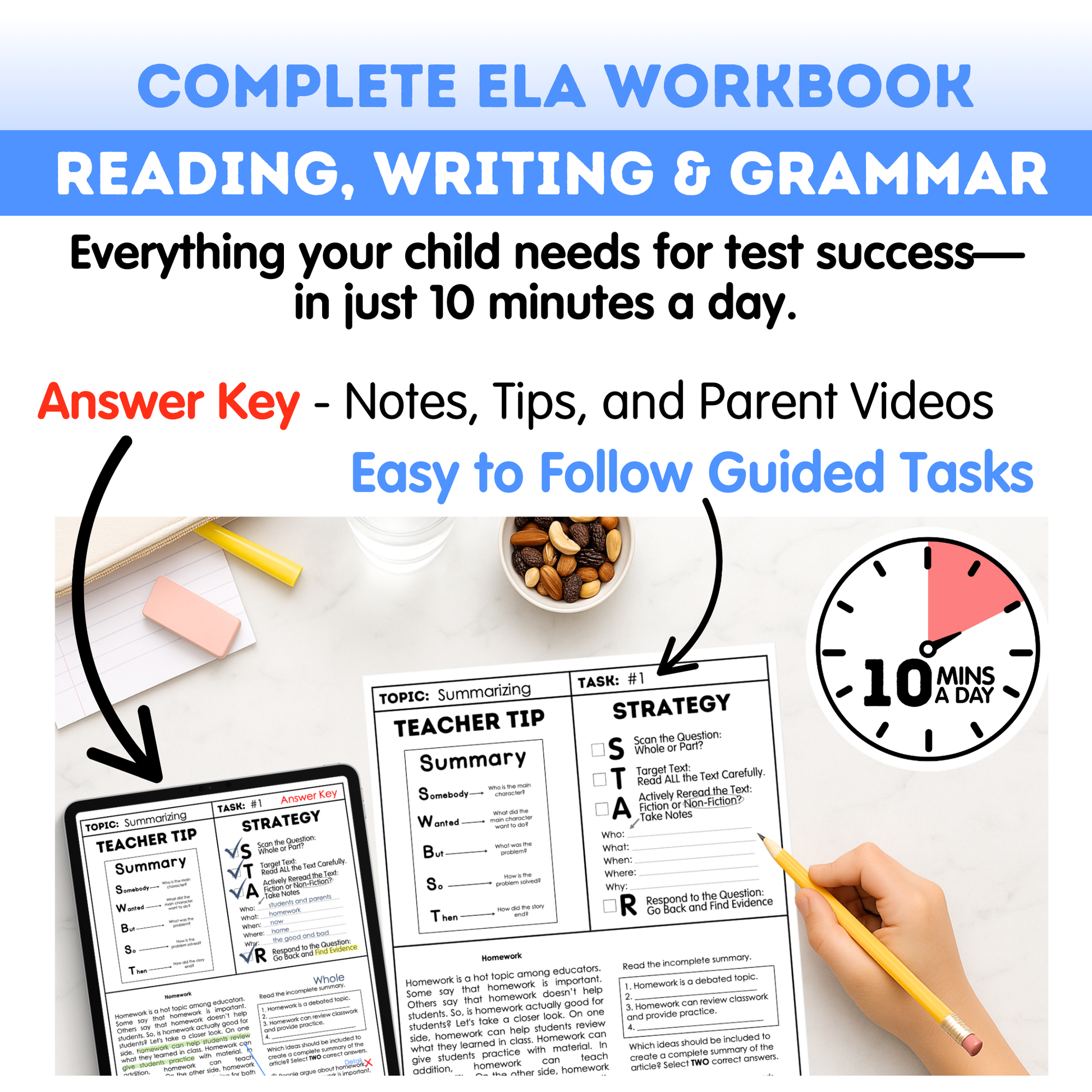 5th Grade Ultimate 3-in-1 ELA Workbook for Test Prep Success - Digital PDF
