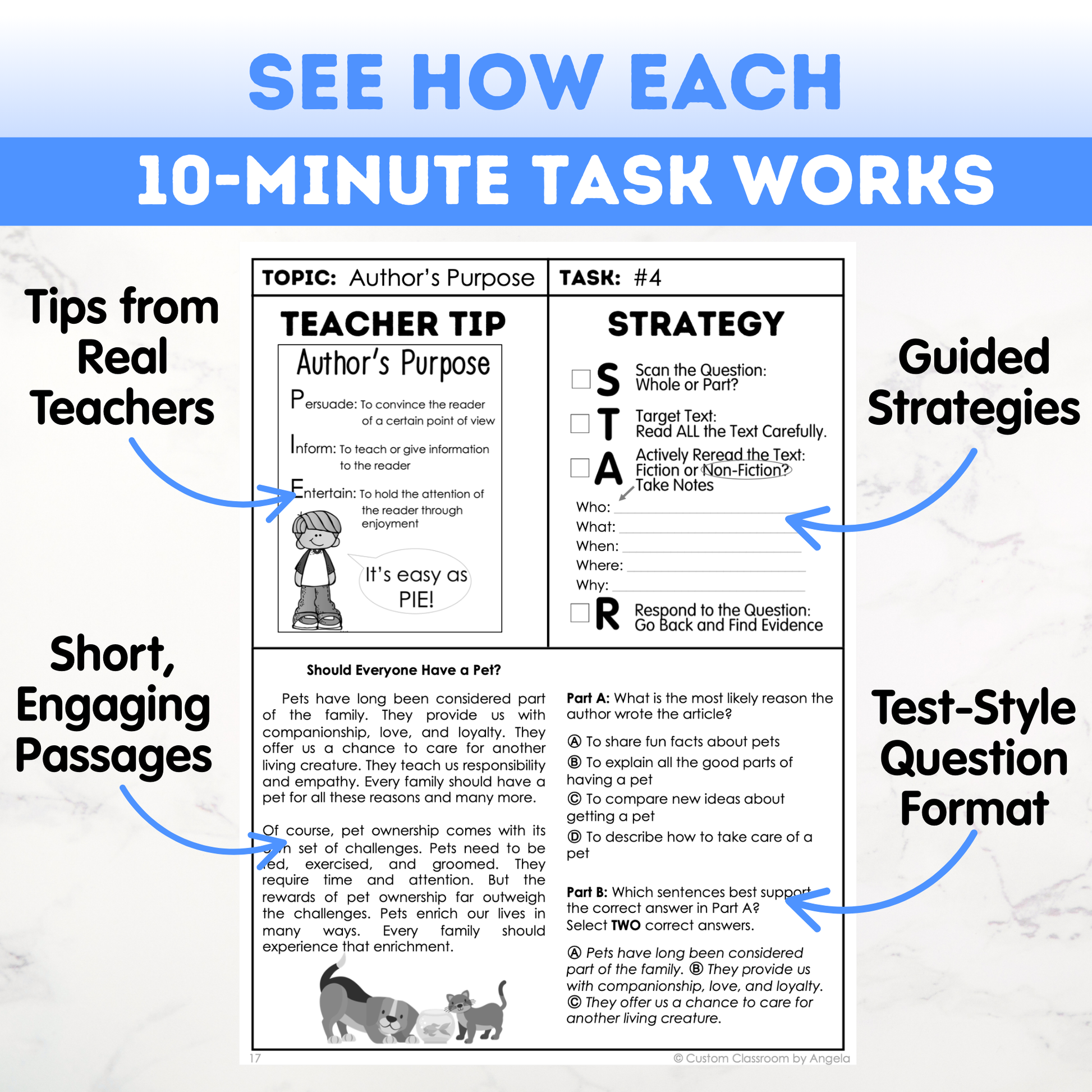 ✅ Part 1: Reading Comprehension – 32 skill-building tasks with fiction & nonfiction passages