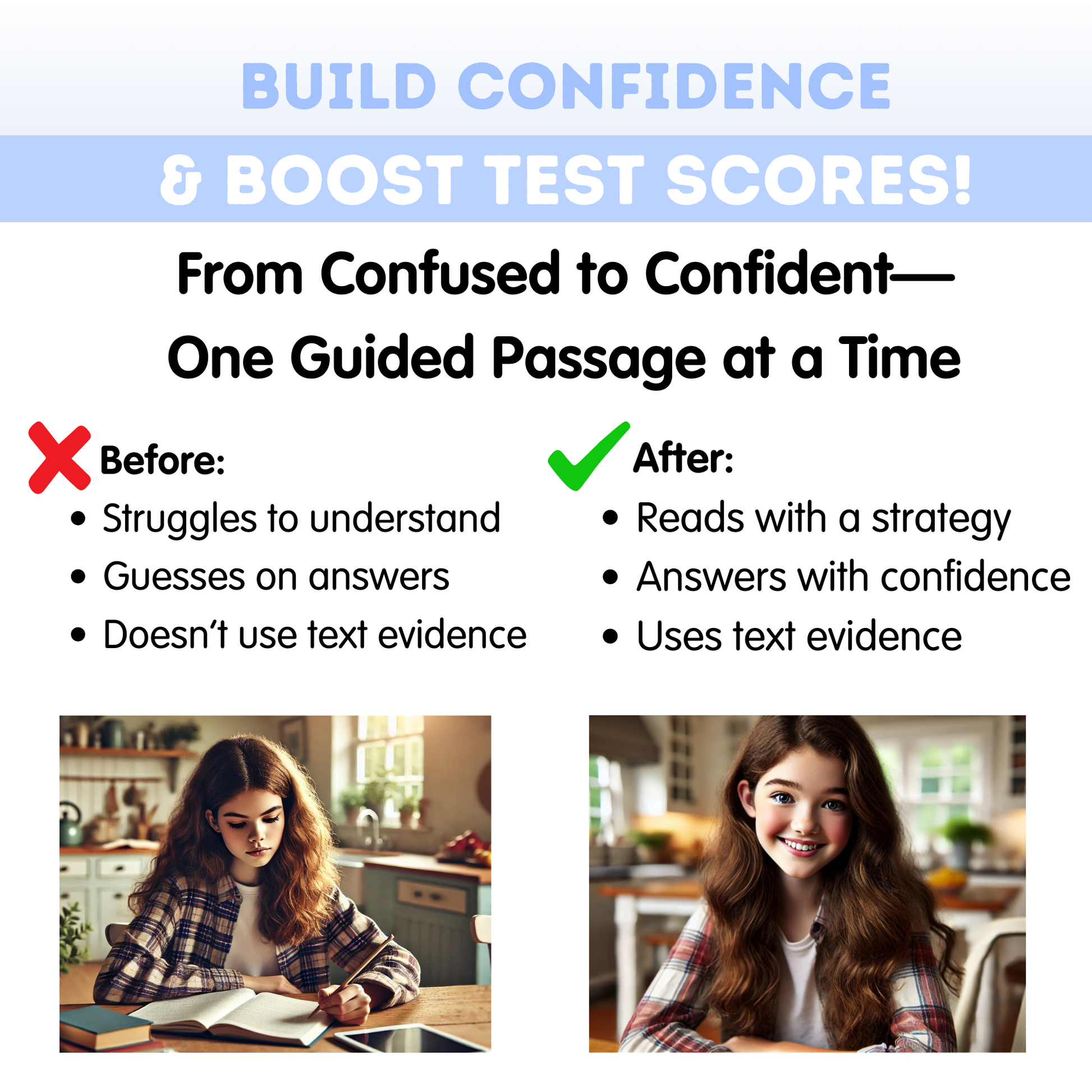 ✅ Test-Style Practice, Simplified – Build reading stamina with longer passages and authentic test question types.
