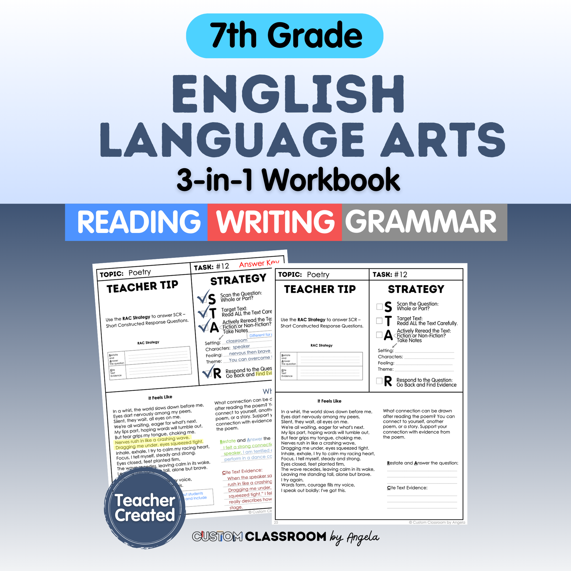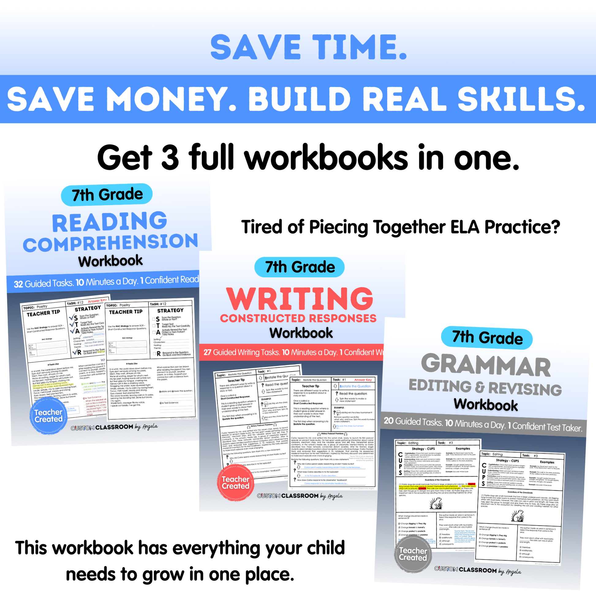 7th Grade Ultimate 3-in-1 ELA Workbook for Test Prep Success - Digital PDF